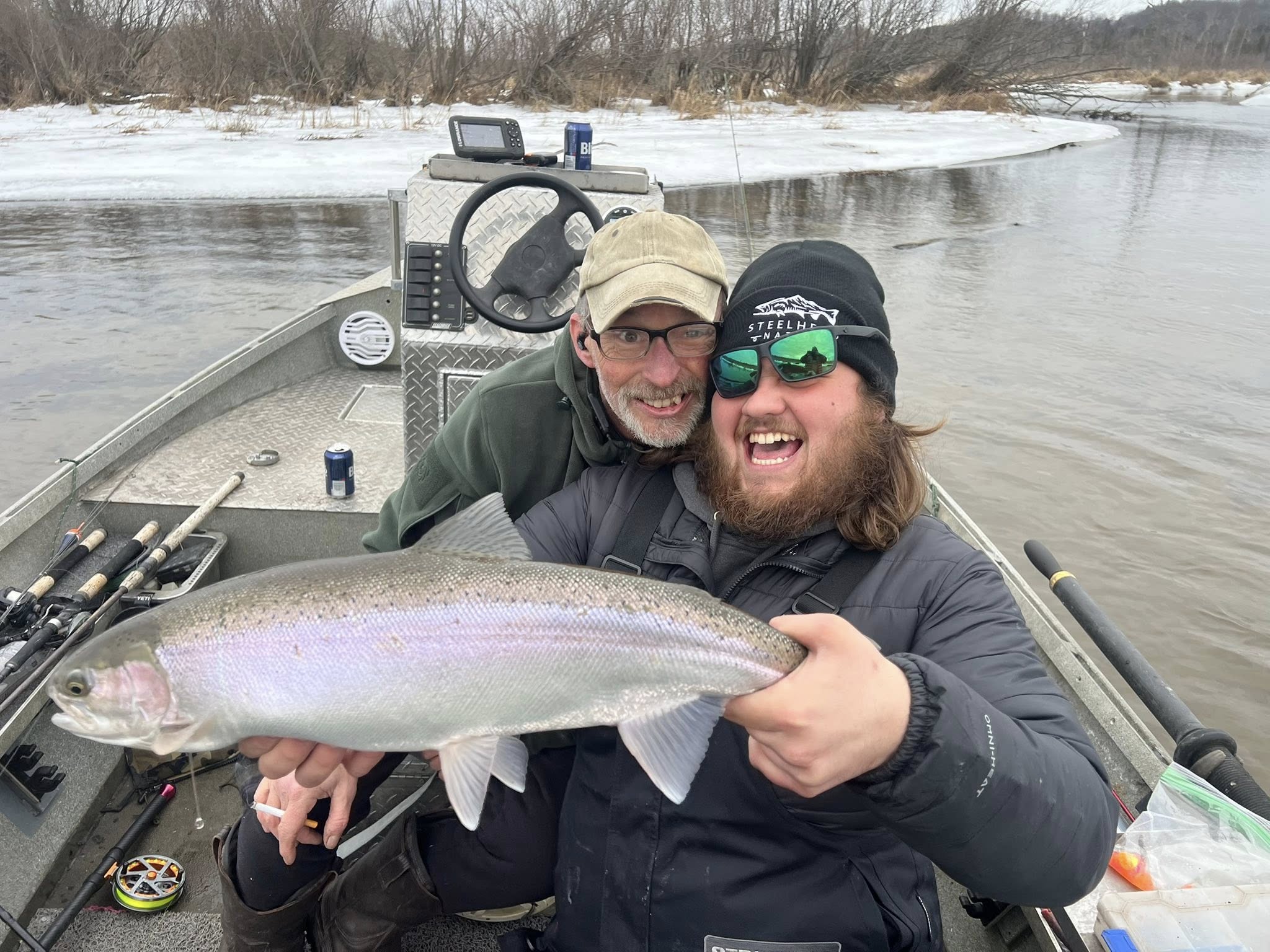 Browse the Lake Michigan fishing photo gallery from Steelhead Nation Outfitters and see why anglers choose our charter for trophy steelhead and salmon. Each image features recent catches from the Manistee and Betsie Rivers, detailed with dates, species, and tackle so you can gauge the season’s bite at a glance. From chrome-bright spring steelhead to hefty fall Chinook, these photos showcase the productive waters we fish and the quality gear we provide on every outing.